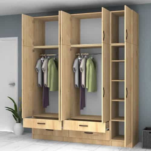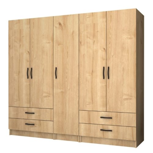 Ντουλάπα ρούχων Ricardo Megapap πεντάφυλλη με συρτάρια χρώμα φυσικό οξιάς 200×51,8×181εκ.