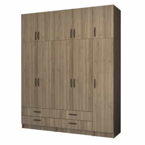 Ντουλάπα ρούχων Ricardo Megapap πεντάφυλλη με συρτάρια χρώμα καρυδί 200×51,8×181εκ.