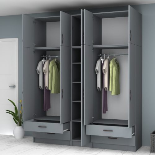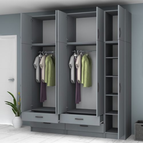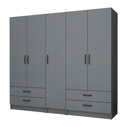 Ντουλάπα ρούχων Ricardo Megapap πεντάφυλλη με συρτάρια χρώμα ανθρακί 200×51,8×181εκ.