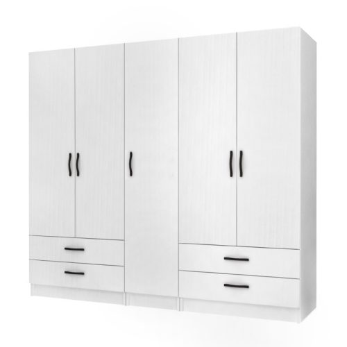 Ντουλάπα ρούχων Ricardo Megapap πεντάφυλλη με συρτάρια χρώμα λευκό 200×51,8×181εκ.