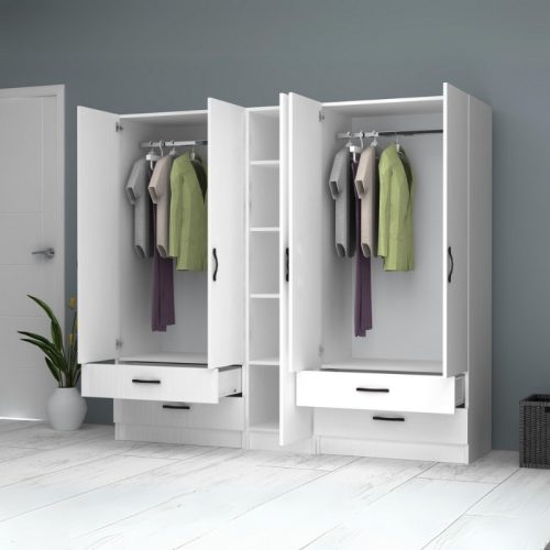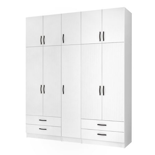 Ντουλάπα ρούχων Ricardo Megapap πεντάφυλλη με πατάρι και συρτάρια χρώμα λευκό 200×51,8×240εκ.