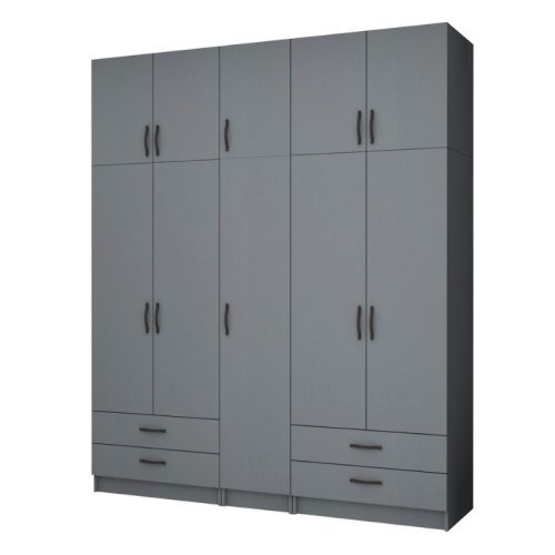 Ντουλάπα ρούχων Ricardo Megapap πεντάφυλλη με πατάρι και συρτάρια χρώμα ανθρακί 200×51,8×240εκ.