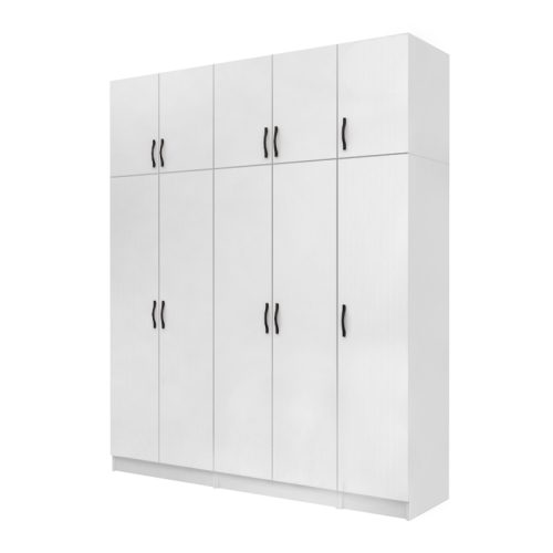 Ντουλάπα ρούχων Vivian Megapap πεντάφυλλη με πατάρι χρώμα λευκό 200×51,8×240εκ.