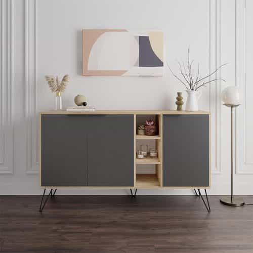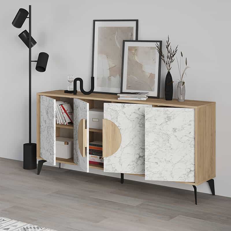 Μπουφές μελαμίνης Gora Megapap χρώμα φυσικό οξιάς – λευκό εφέ μαρμάρου 180×35,6×82εκ.