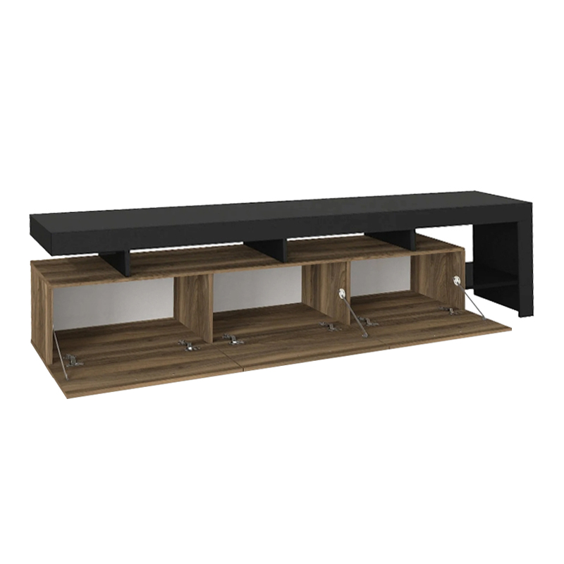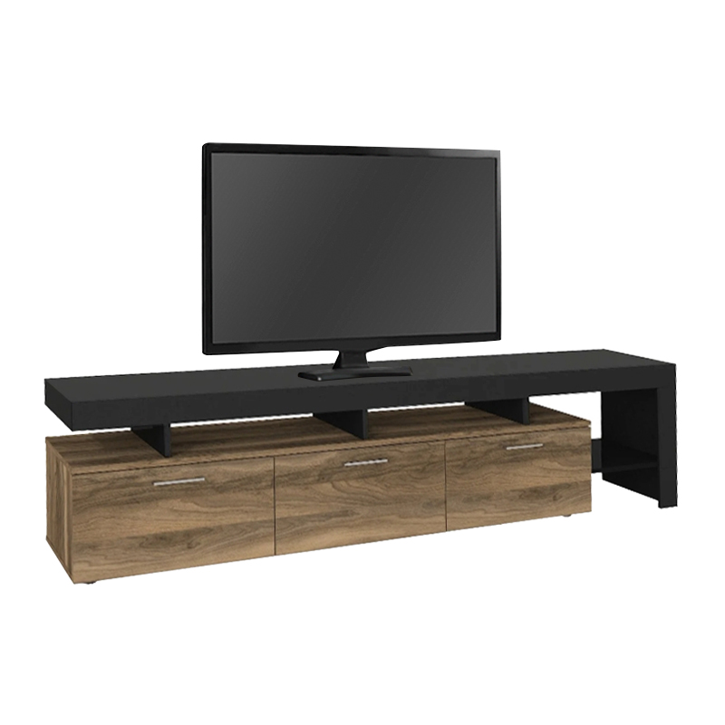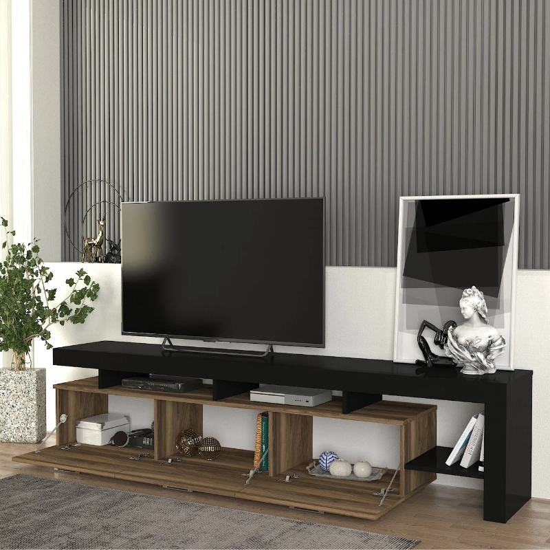 Έπιπλο τηλεόρασης Acnes Megapap χρώμα μαύρο – καρυδί 220x40x52εκ.
