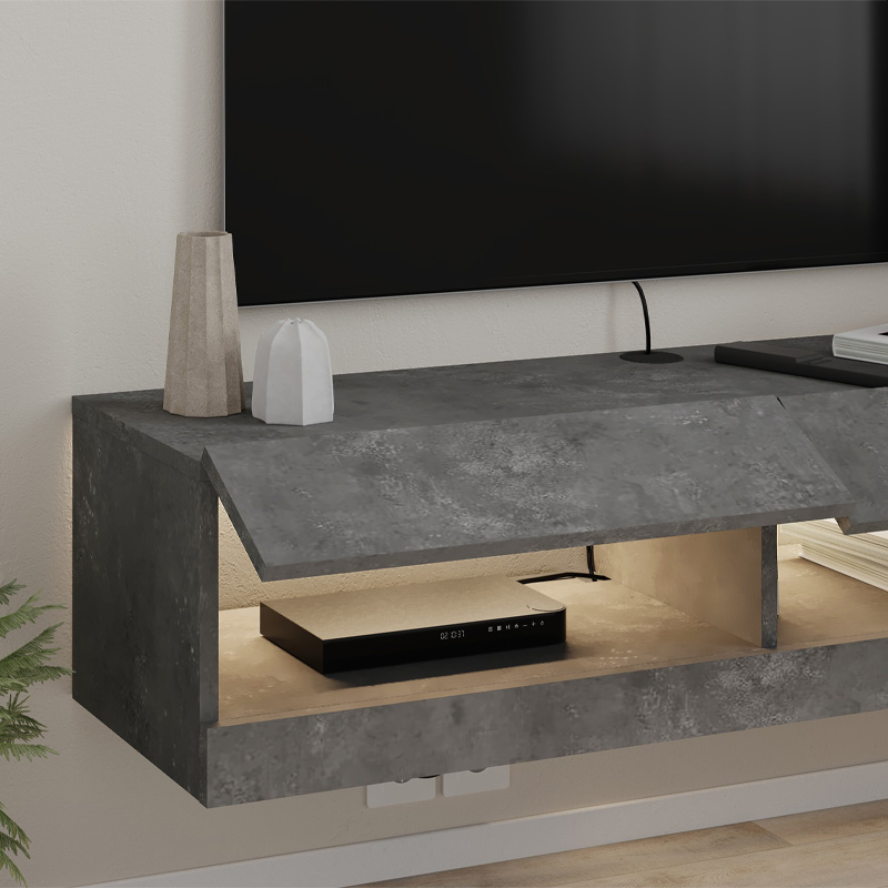 Έπιπλο τηλεόρασης επιτοίχιο Moon Megapap με LED χρώμα γκρι ρετρό 120×33,8×30εκ.