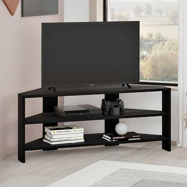 Έπιπλο τηλεόρασης γωνιακό Thales Megapap χρώμα black wood 110x36x45εκ.