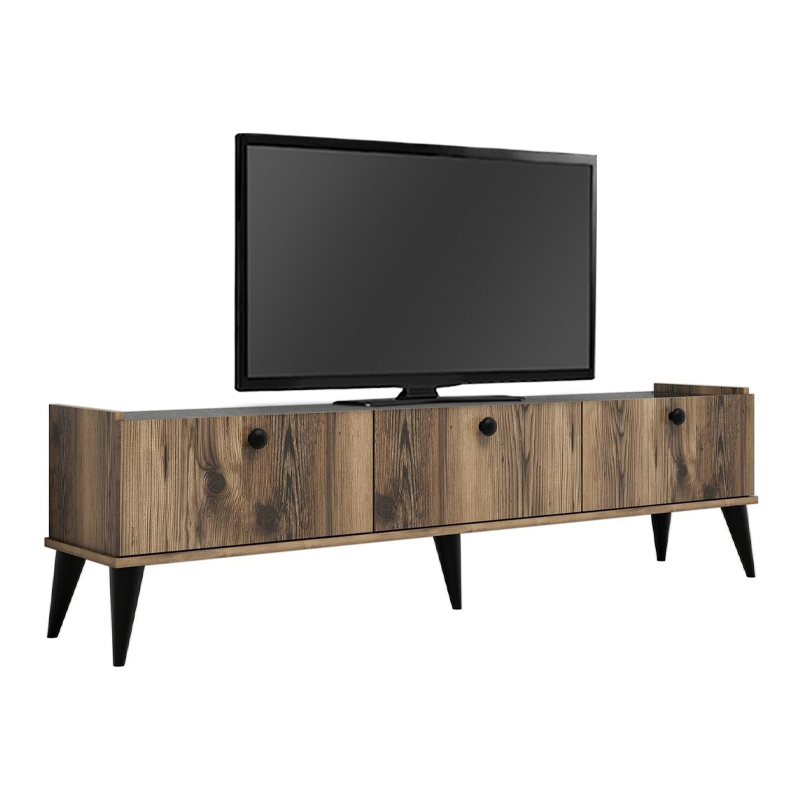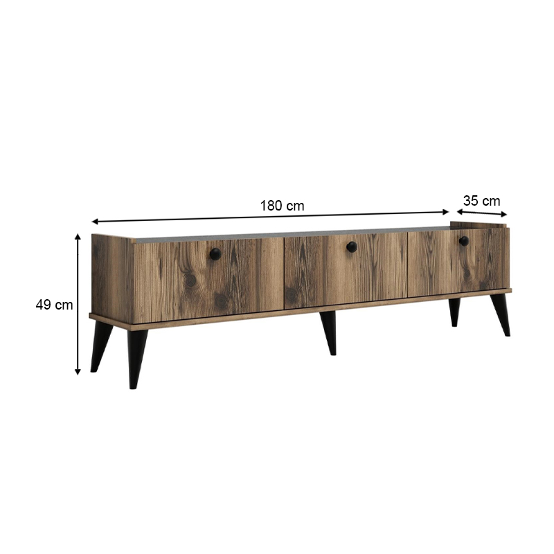 Έπιπλο τηλεόρασης Lidya Megapap χρώμα καρυδί – μαύρο εφέ μαρμάρου 180x35x49εκ.