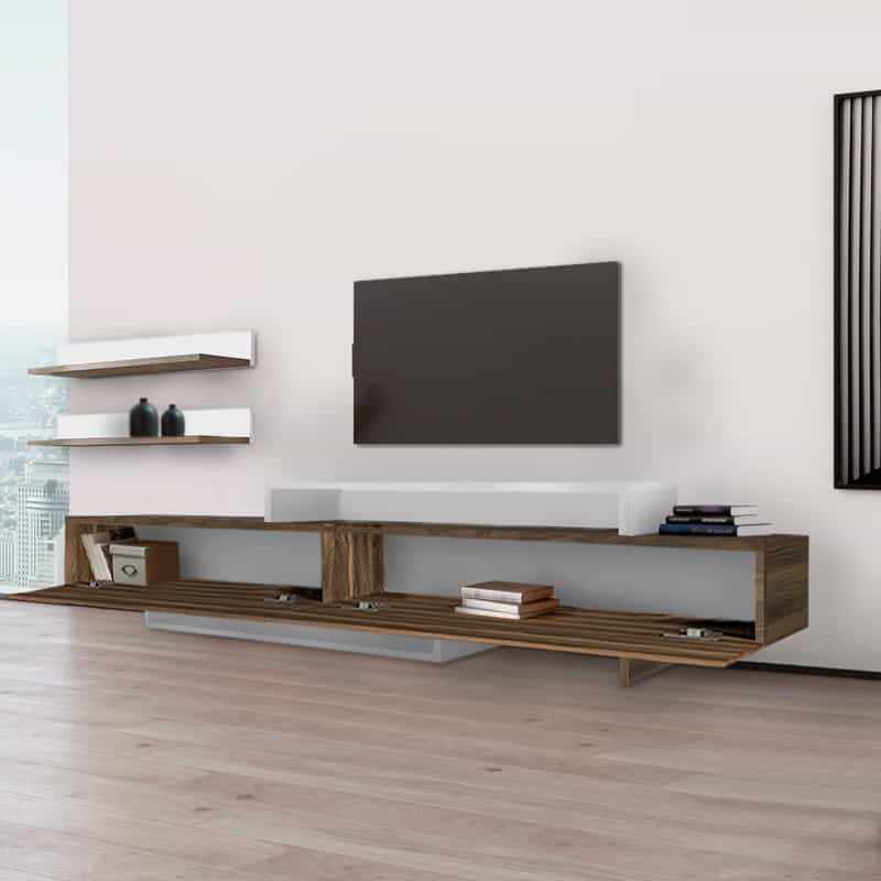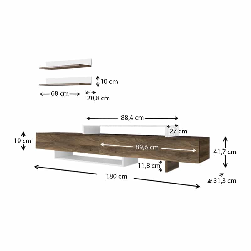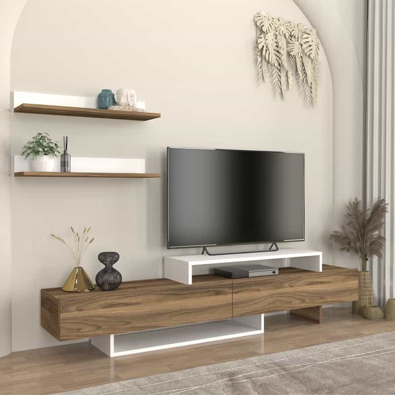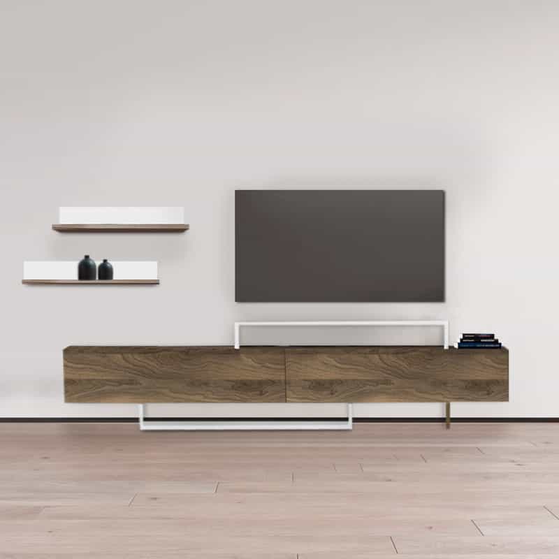 Έπιπλο τηλεόρασης Nirvana Megapap από μελαμίνη χρώμα καρυδί – λευκό 180×31,3×41,7εκ.