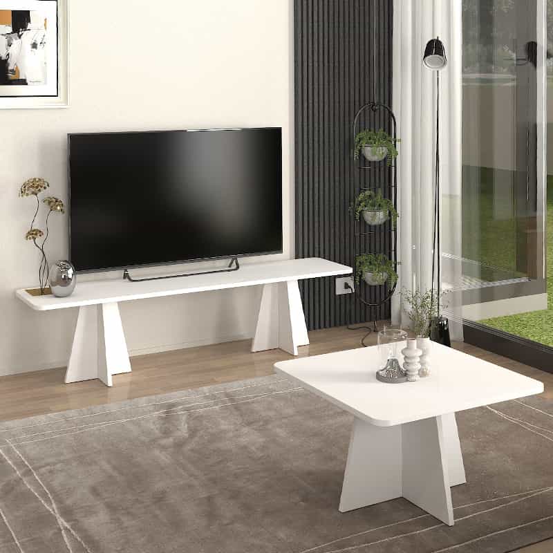 Έπιπλο τηλεόρασης Sugar Megapap χρώμα λευκό 150×29,6×36,8εκ.