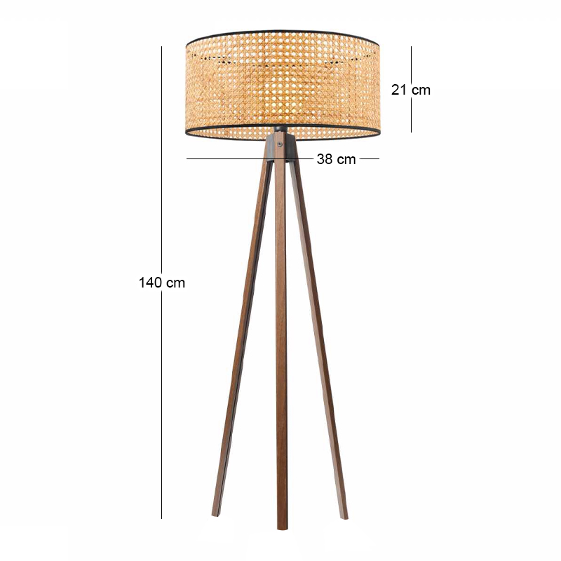 Φωτιστικό δαπέδου Rivo Megapap E27 ξύλινο – ρατάν χρώμα φυσικό Ø38×140εκ.