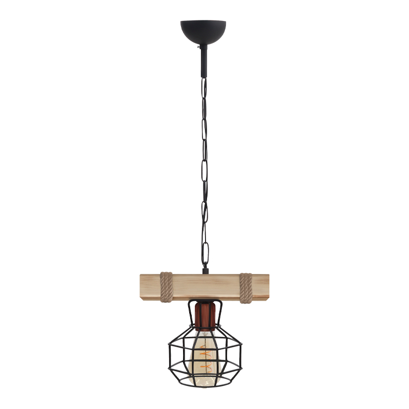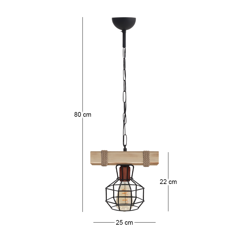 Φωτιστικό οροφής Lumenia Megapap E27 ξύλινο – μεταλλικό μονόφωτο χρώμα φυσικό – μαύρο 25x14x80εκ.