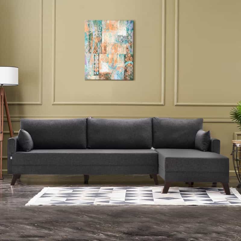 Γωνιακός καναπές Bella Megapap δεξιά γωνία υφασμάτινος χρώμα ανθρακί 275x165x85εκ.