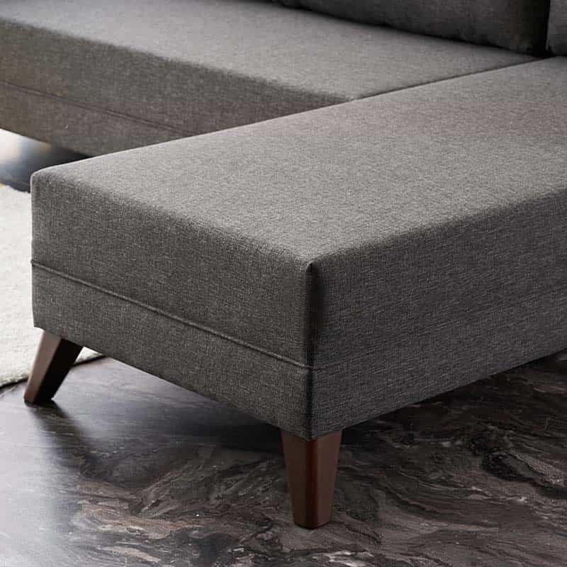 - Φέρει πόδια από πολυπροπυλένιο, ειδικά σχεδιασμένο για καναπέδες, με ξύλινη εμφάνιση σε καρυδί χρώμα.