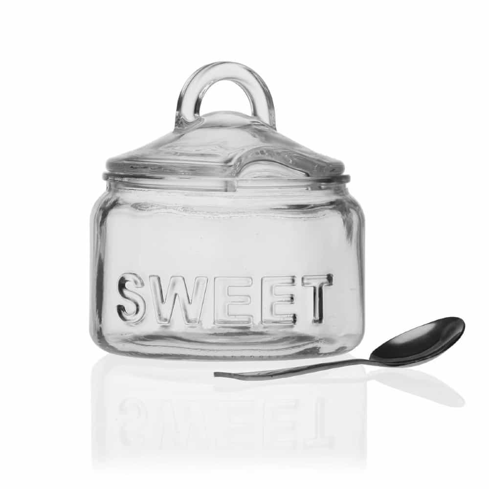 Γυάλινο δοχείο για ζάχαρη με κουταλάκι
