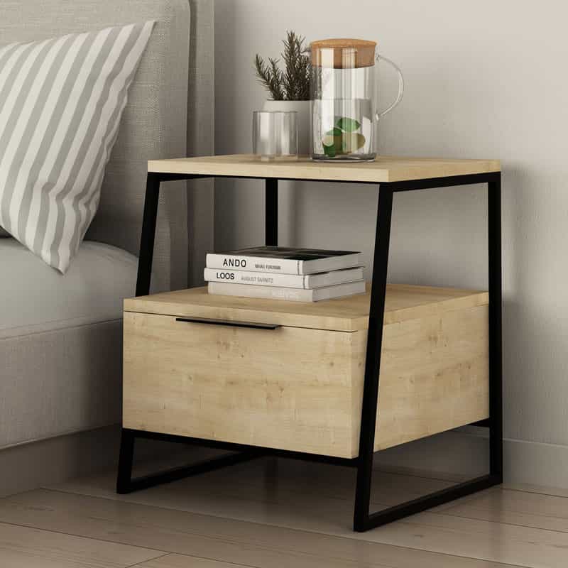 Κομοδίνο μελαμίνης Pal Megapap χρώμα φυσικό οξιάς 45x40x50εκ.