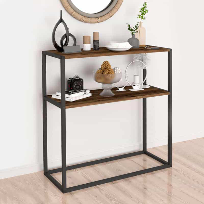 Κονσόλα Castel Megapap μεταλλική – μελαμίνης χρώμα μαύρο – καπνιστή καρυδιά 90×33,5×90εκ.