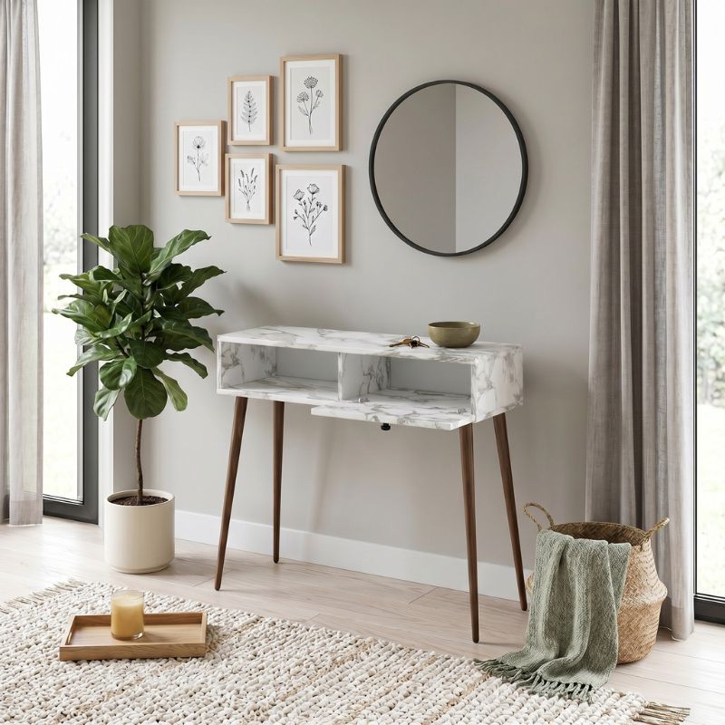 Κονσόλα Napoli Megapap χρώμα λευκό εφέ μαρμάρου 90x29x88εκ.