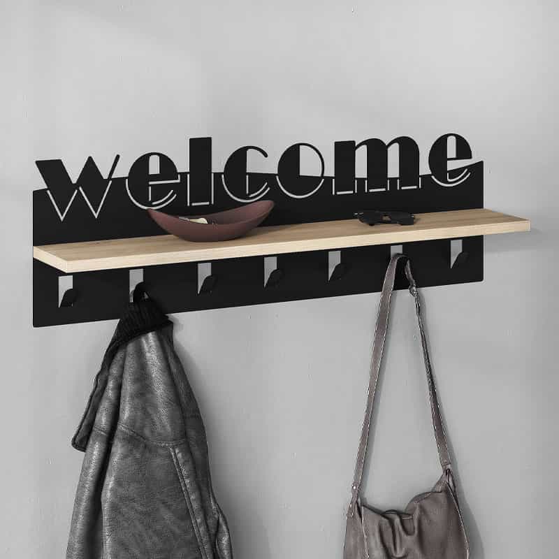 Κρεμάστρα τοίχου Welcome Megapap χρώμα μαύρο – sapphire oak 86×15,2×29εκ.