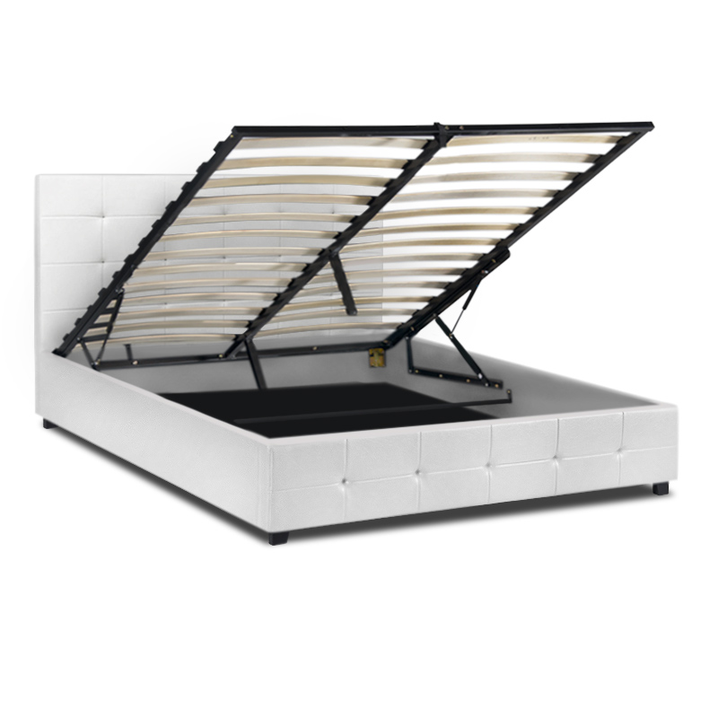 Κρεβάτι Iro Megapap από τεχνόδερμα με αποθηκευτικό χώρο χρώμα λευκό 160×200εκ.