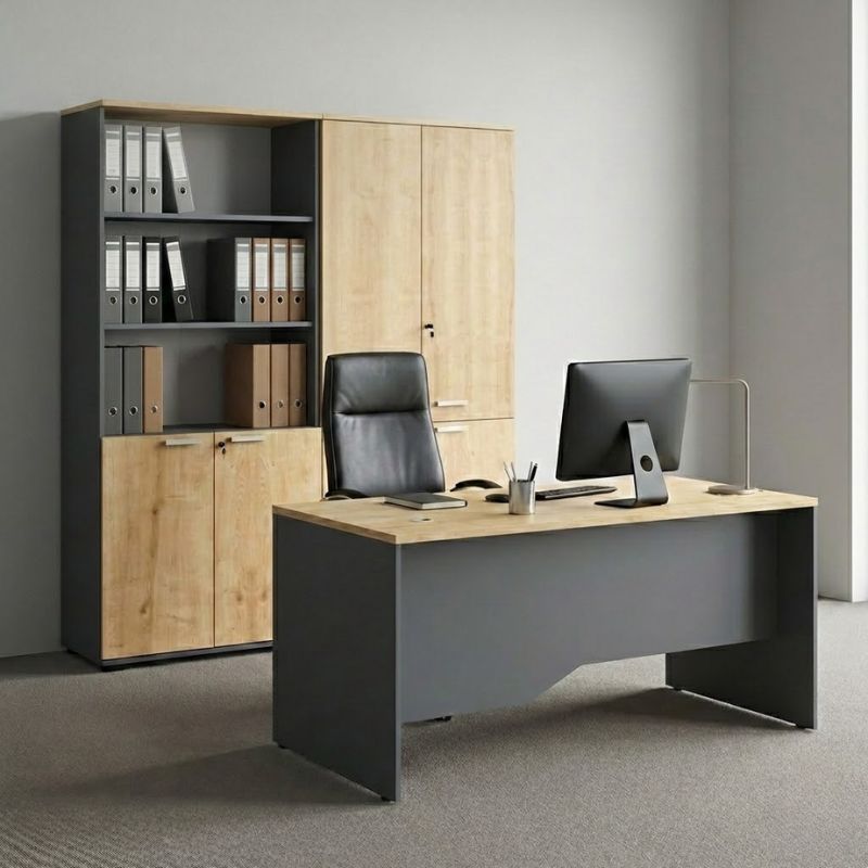 Η ντουλάπα γραφείου της σειράς Venturo προσφέρει άφθονο αποθηκευτικό χώρο για έγγραφα, φακέλους και υλικά γραφείου, με στιβαρή κατασκευή και ανθεκτικά ράφια που εξασφαλίζουν μακροχρόνια χρήση. Ο μοντέρνος σχεδιασμός και το κομψό φινίρισμά της την καθιστούν ιδανική για κάθε γραφείο που θέλει να συνδυάζει λειτουργικότητα με αισθητική. Συνδυάζεται άψογα με τα γραφεία και τις συρταριέρες της ίδιας σειράς, δημιουργώντας έναν πλήρως οργανωμένο και αρμονικό χώρο εργασίας.
