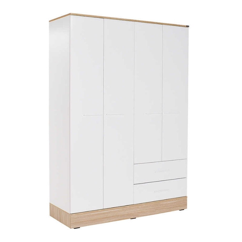 Ντουλάπα ρούχων Base Megapap τετράφυλλη με συρτάρια χρώμα λευκό – sonoma 137x52x198εκ.
