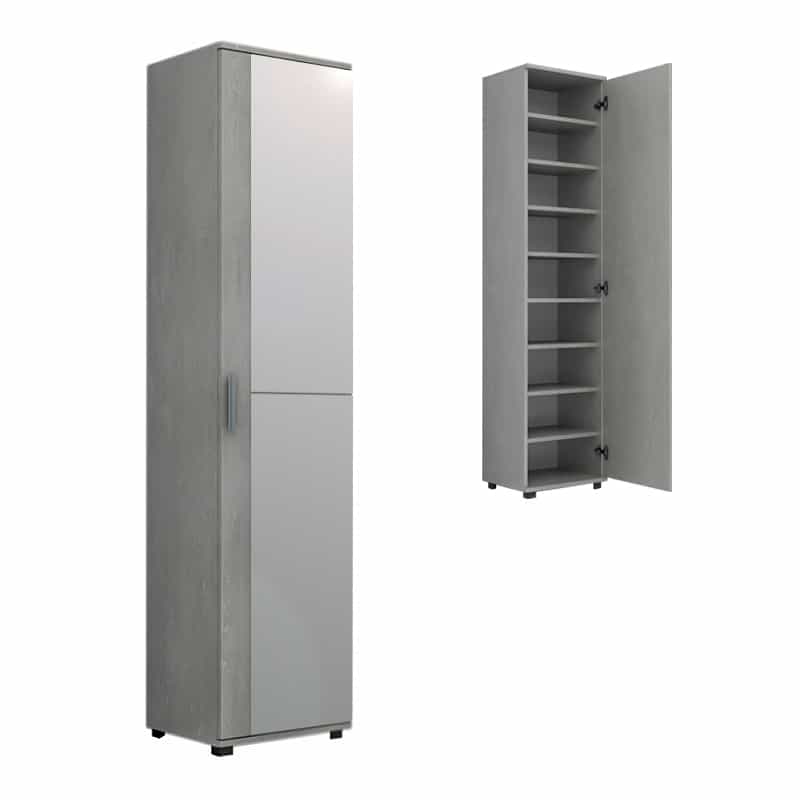 Ντουλάπα ρούχων – παπουτσοθήκη Visla Megapap μονόφυλλη με καθρέπτη χρώμα γκρι σκυροδέματος 45x36x187εκ.