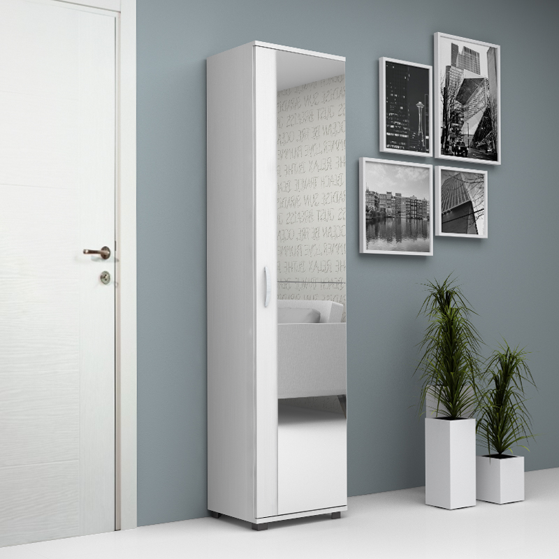 Ντουλάπα ρούχων – παπουτσοθήκη Visla Megapap μονόφυλλη από μελαμίνη με καθρέπτη χρώμα λευκό 45x36x187εκ.
