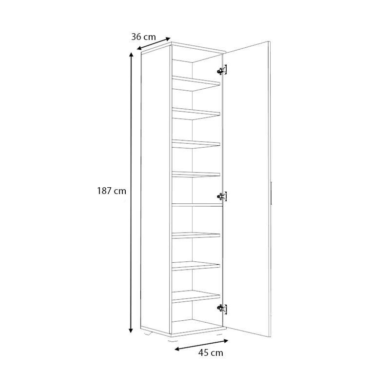 - Διαστάσεις: Μήκος 45 x Βάθος 36 x Ύψος 187 εκ.