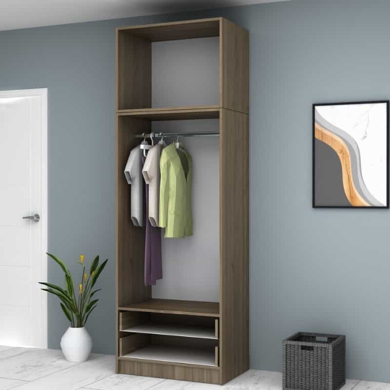 - Στο εσωτερικό της φέρει μια μεταλλική βέργα για κρεμάστρες. Στο κάτω μέρος φέρει δύο πρακτικά συρόμενα συρτάρια.
