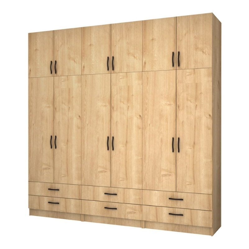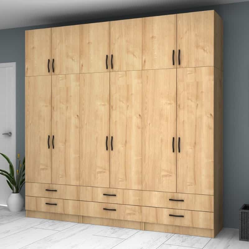Ντουλάπα ρούχων Ricardo Megapap εξάφυλλη με πατάρι και συρτάρια χρώμα φυσικό οξιάς 240×51,8×240εκ.