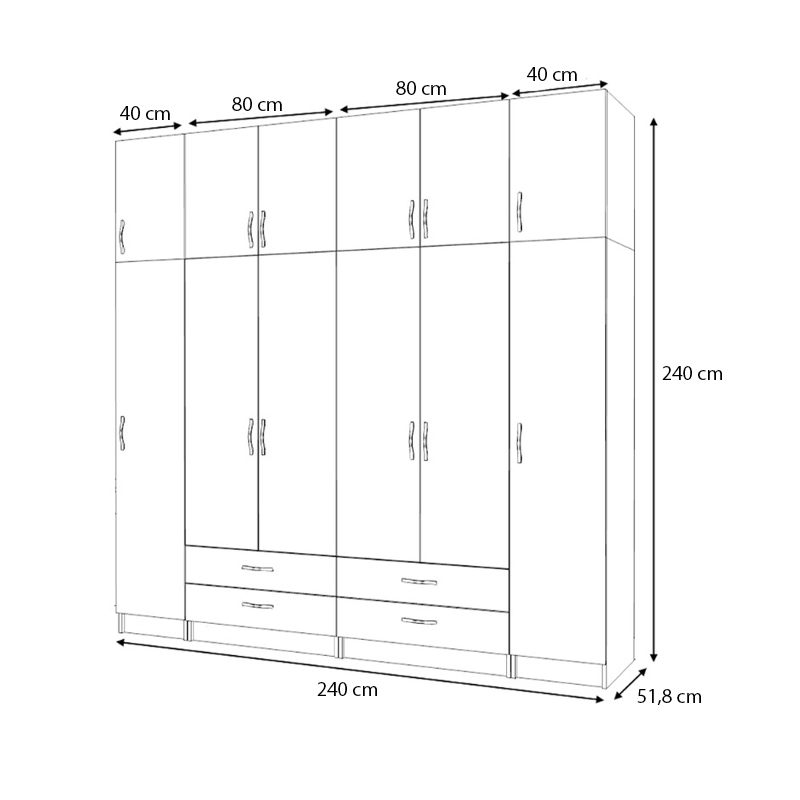 - Διαστάσεις ντουλάπας: Μήκος 240 x Βάθος 51,8 x Ύψος 240 εκ.