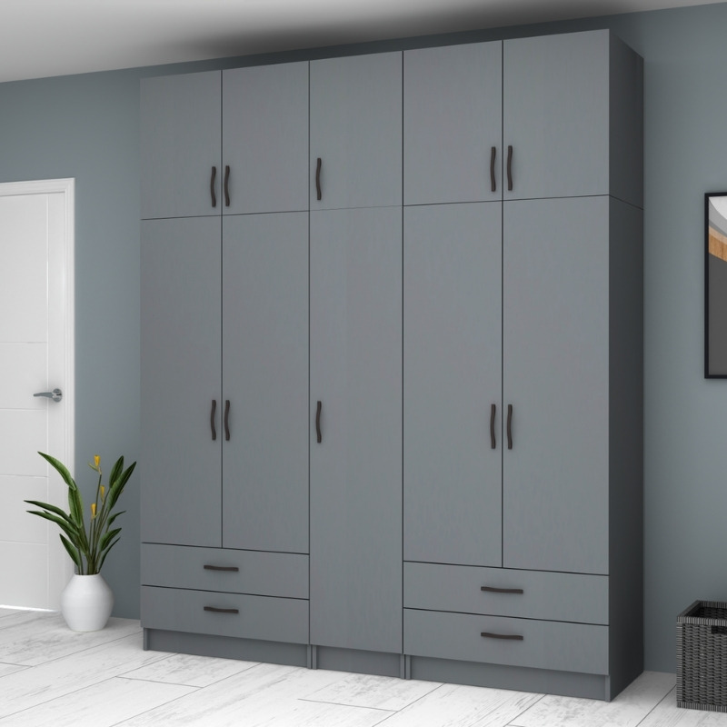 Ντουλάπα ρούχων Ricardo Megapap πεντάφυλλη με πατάρι και συρτάρια χρώμα ανθρακί 200×51,8×240εκ.