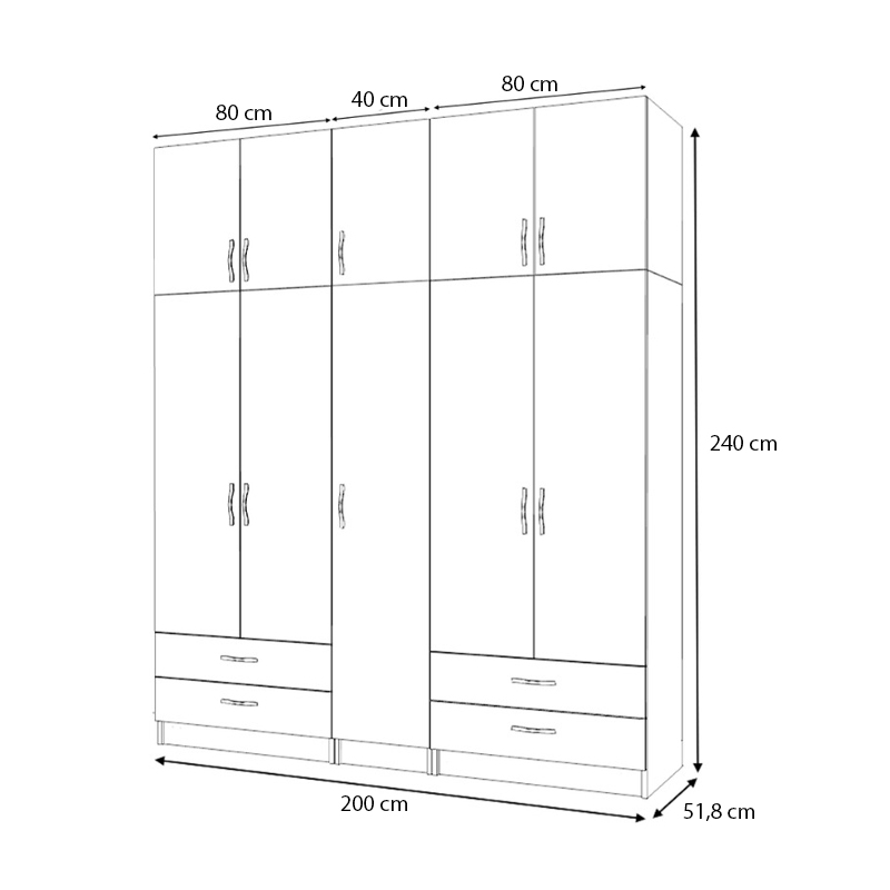 • Διαστάσεις ντουλάπας: Μήκος 200 x Βάθος 51,8 x Ύψος 240 εκ.