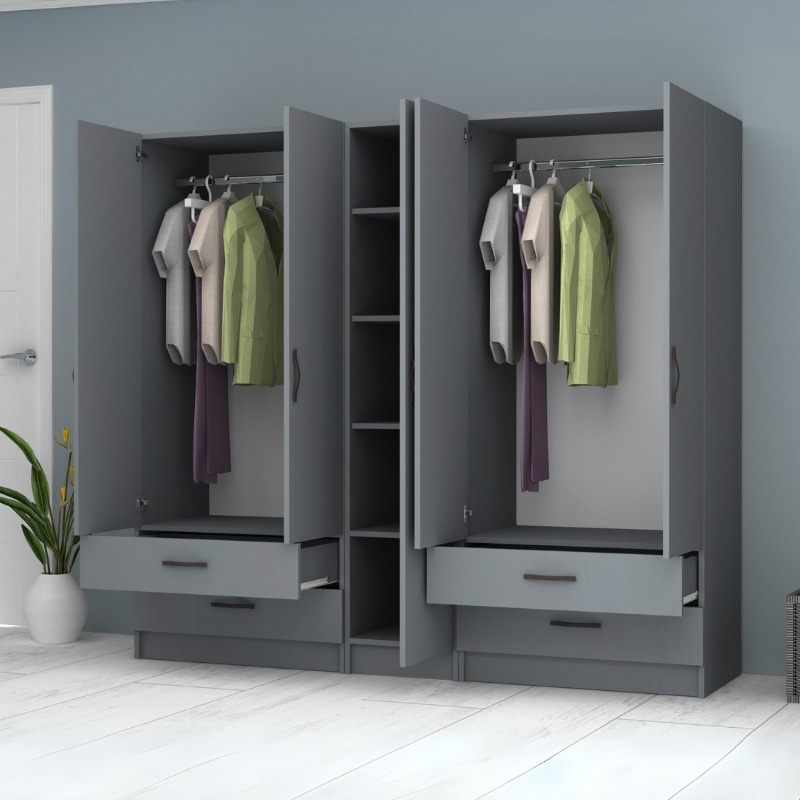 Ντουλάπα ρούχων Ricardo Megapap πεντάφυλλη με συρτάρια χρώμα ανθρακί 200×51,8×181εκ.