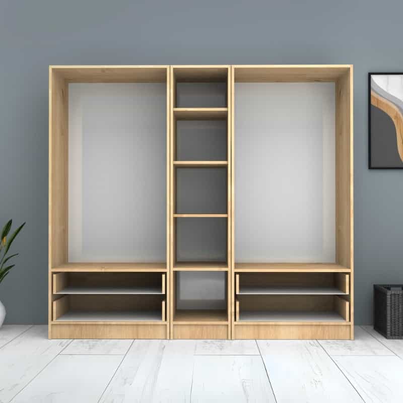 Ντουλάπα ρούχων Ricardo Megapap πεντάφυλλη με συρτάρια χρώμα φυσικό οξιάς 200×51,8×181εκ.