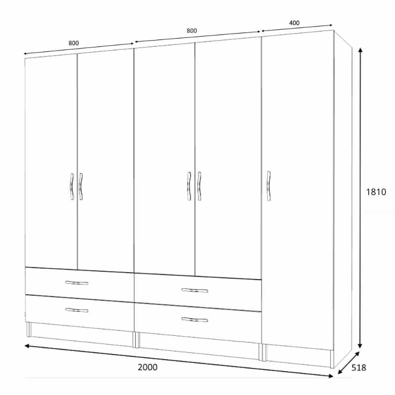 - Διαστάσεις ντουλάπας: Μήκος 200 x Βάθος 51,8 x Ύψος 181 εκ.