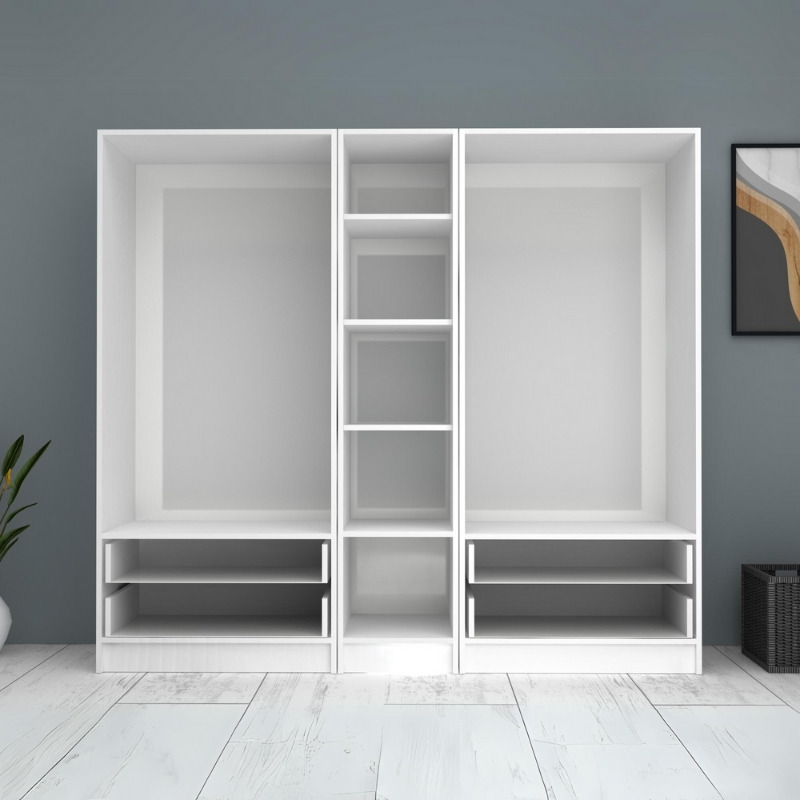 Ντουλάπα ρούχων Ricardo Megapap πεντάφυλλη με συρτάρια χρώμα λευκό 200×51,8×181εκ.