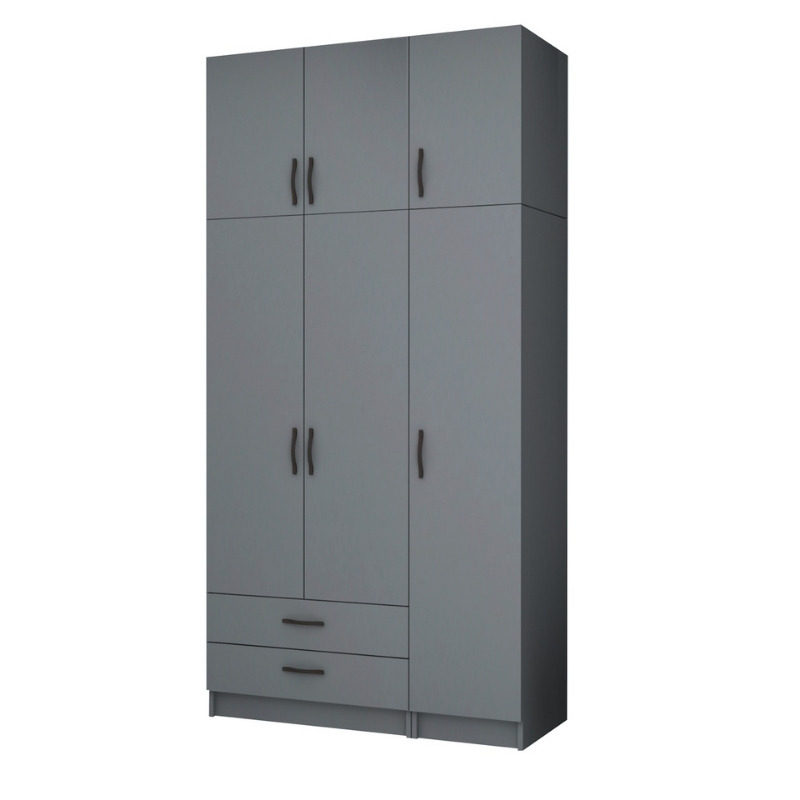 Ντουλάπα ρούχων Ricardo Megapap τρίφυλλη με πατάρι και συρτάρια χρώμα ανθρακί 120×51,8×240εκ.