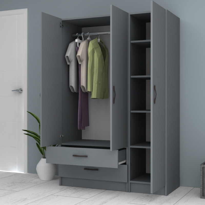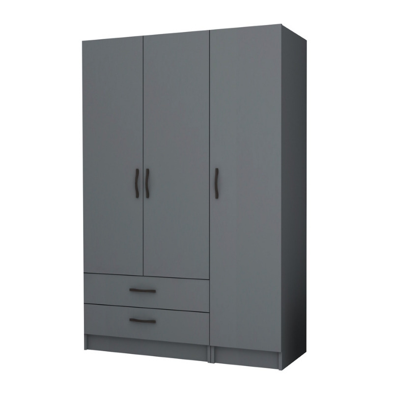 Ντουλάπα ρούχων Ricardo Megapap τρίφυλλη με συρτάρια χρώμα ανθρακί 120×51,8×181εκ.