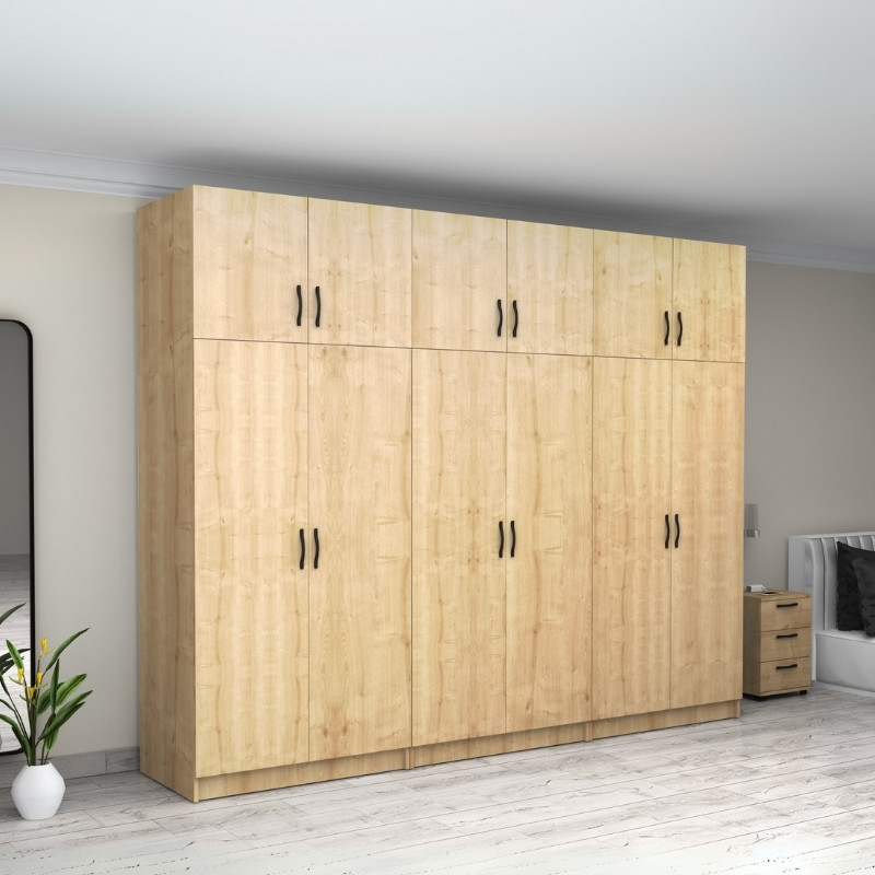 Ντουλάπα ρούχων Victoria Megapap εξάφυλλη με πατάρι χρώμα φυσικό οξιάς 300x60x240εκ.