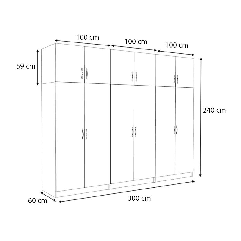 - Διαστάσεις ντουλάπας: Μήκος 300 x Βάθος 60 x Ύψος 240 εκ.