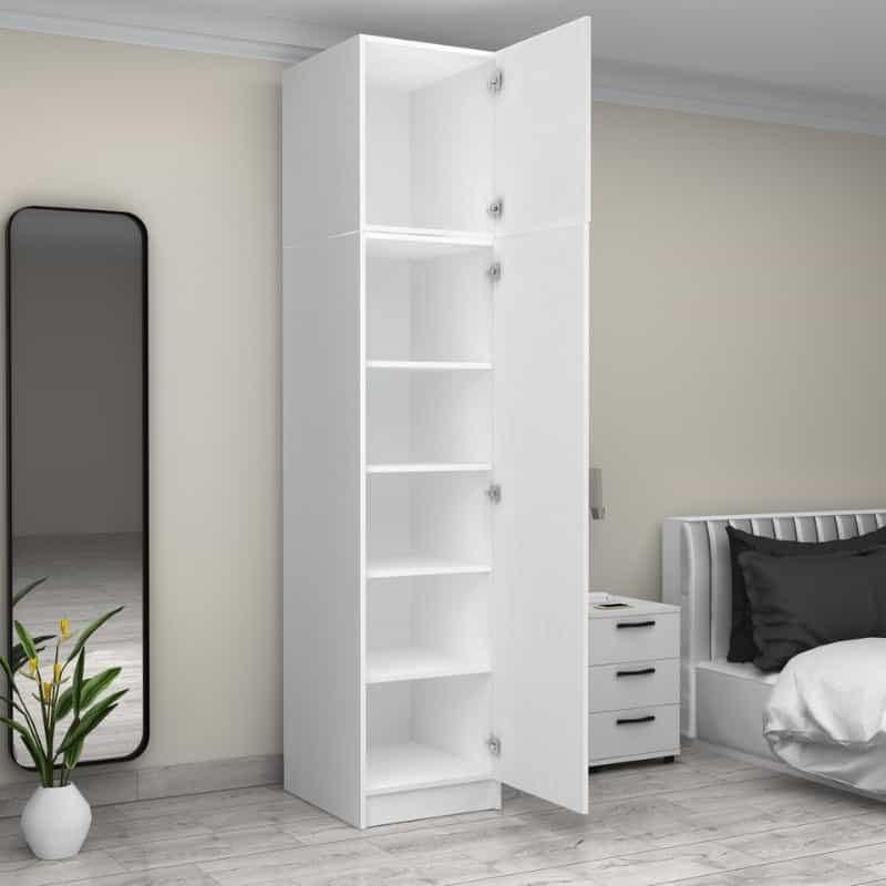 Ντουλάπα ρούχων Victoria Megapap μονόφυλλη με πατάρι χρώμα λευκό 50x60x240εκ.