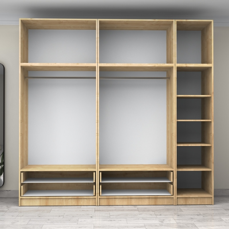 Ντουλάπα ρούχων Victoria Megapap πεντάφυλλη με πατάρι και συρτάρια χρώμα φυσικό οξιάς 250x60x240εκ.