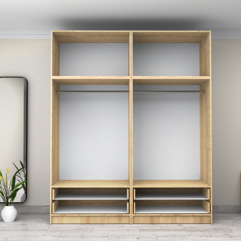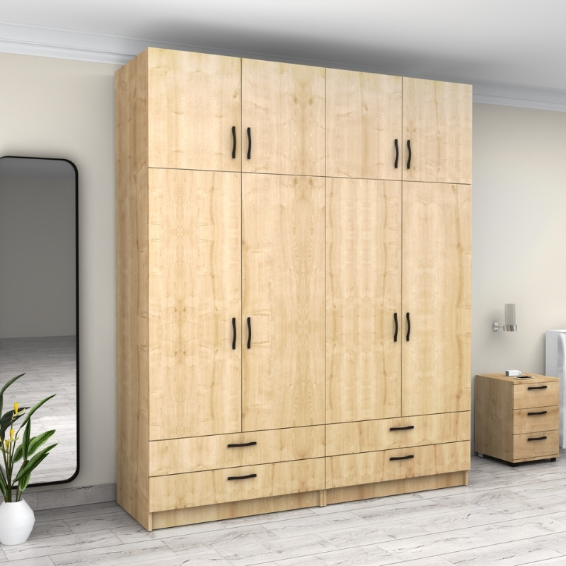 Ντουλάπα ρούχων Victoria Megapap τετράφυλλη με πατάρι και συρτάρια χρώμα φυσικό οξιάς 200x60x240εκ.