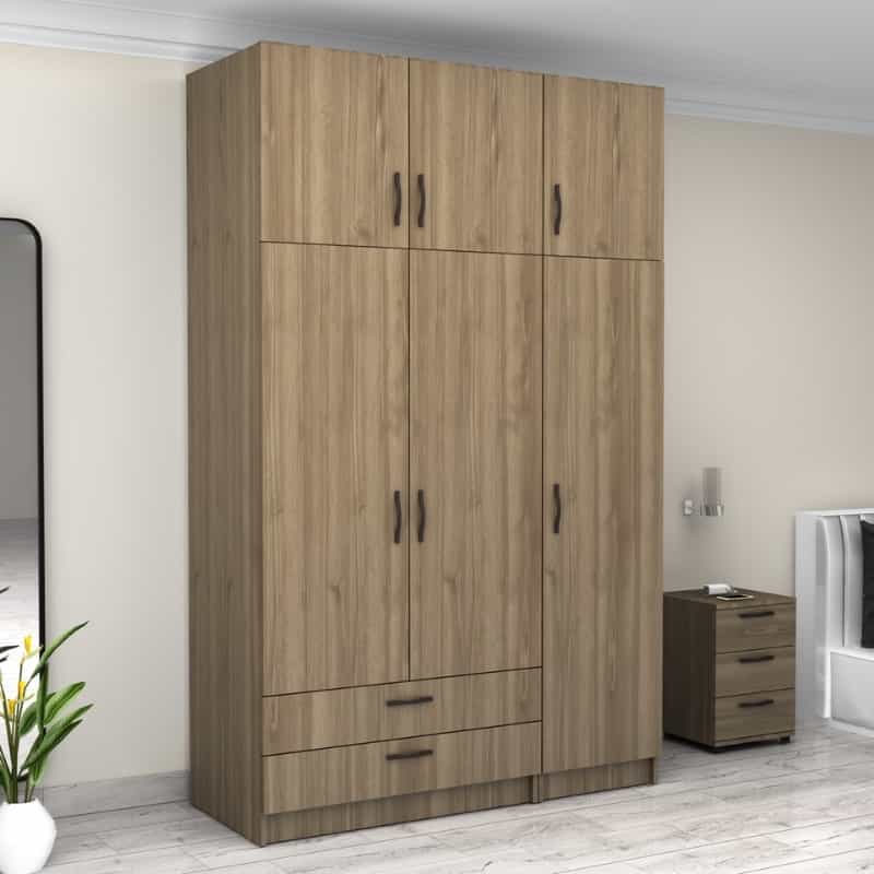 Ντουλάπα ρούχων Victoria Megapap τρίφυλλη με πατάρι και συρτάρια χρώμα καρυδί 150x60x240εκ.