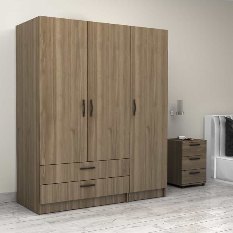 Ντουλάπα ρούχων Victoria Megapap τρίφυλλη με συρτάρια χρώμα καρυδί 150x60x181εκ.