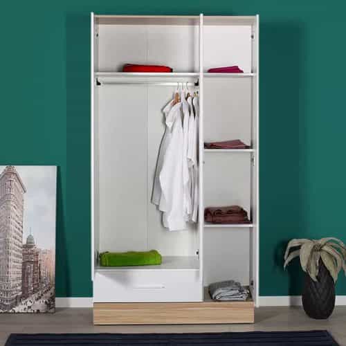 - Στο εσωτερικό της φέρει μια μεταλλική βέργα για κρεμάστρες και ράφια για μεγαλύτερη αποθήκευση.