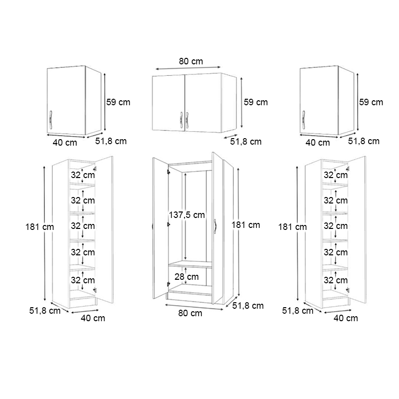 - Διαστάσεις δίφυλλης ντουλάπας: Μήκος 80 x Βάθος 51,8 x Ύψος 181 εκ.