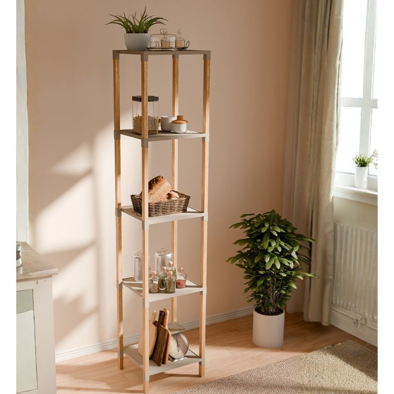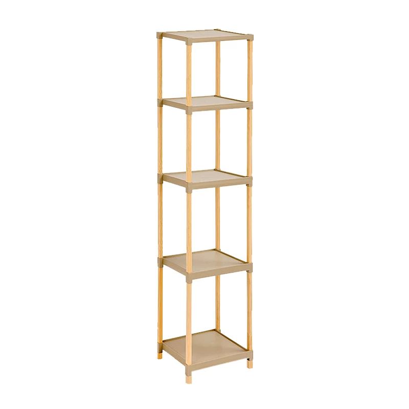 Ραφιέρα δαπέδου πλαστική – ξύλινη χρώμα φυσικό – μπεζ 28x25x137εκ.